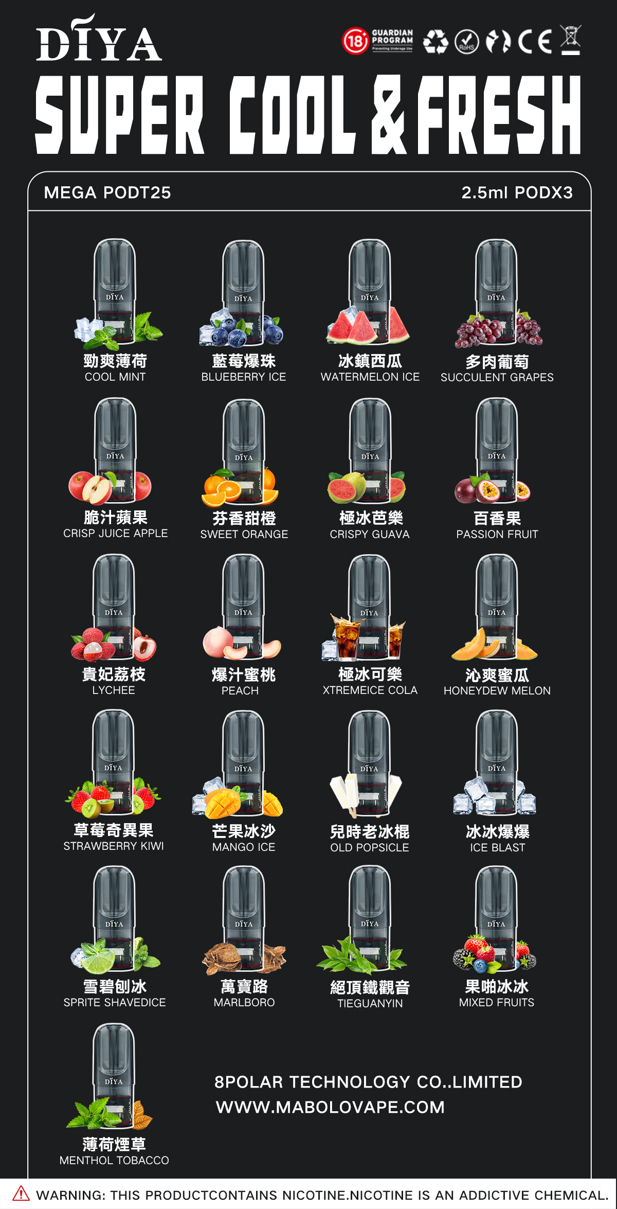 從果香、薄荷到特色風味,保持馬來煙彈一貫的「味道更濃」特色。